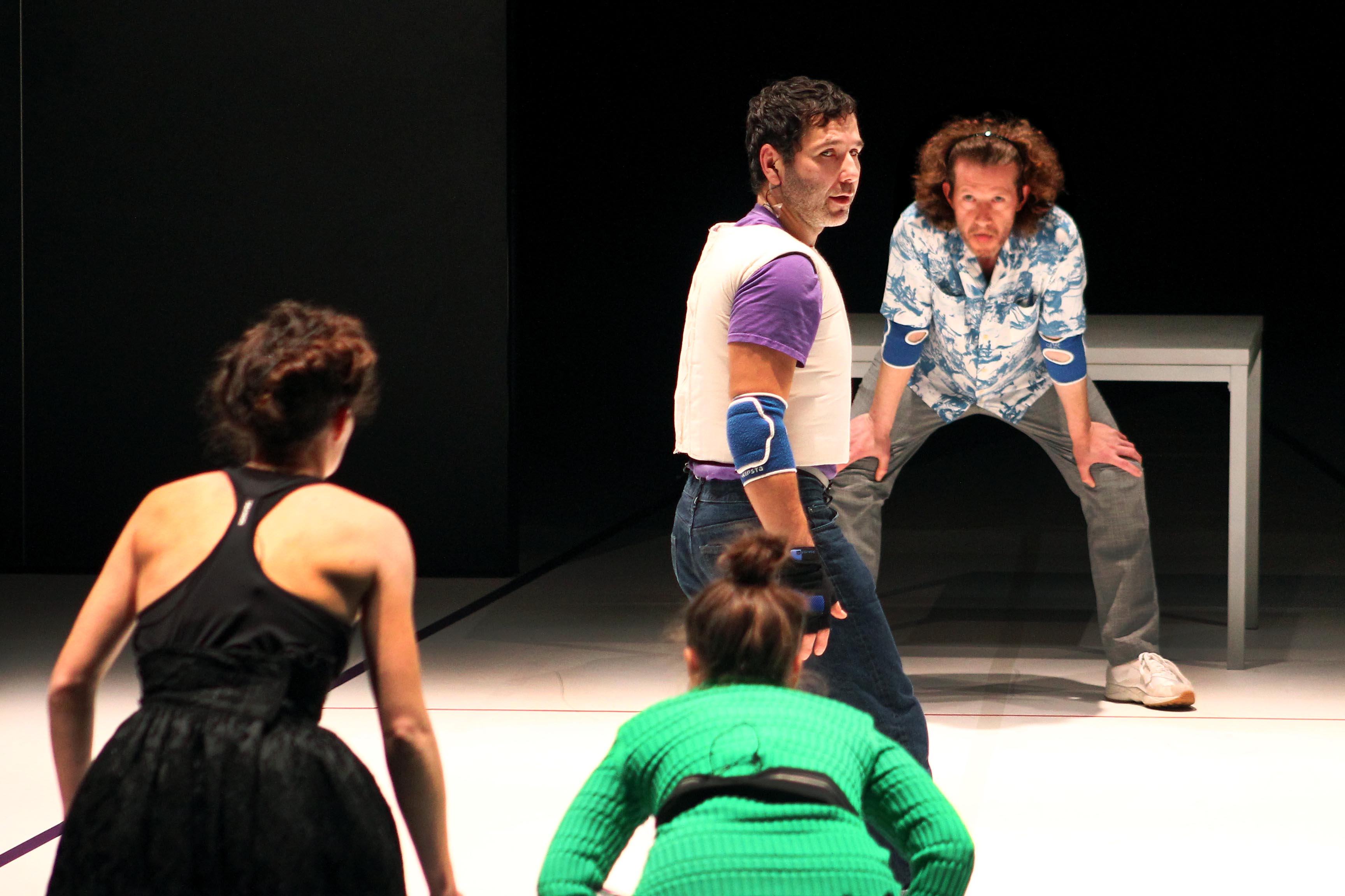 Empruntant aux codes du cirque, les quatre comédien·nes-enquêteur·rices mettent littéralement en scène « le corps du pouvoir » dans une succession de rounds de deux minutes trente. Jeux de luttes, cas de conscience, impossibles équilibres, injonctions contradictoires... Ludique et saisissant à la fois.